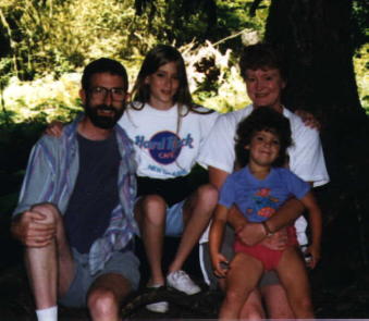 with Andrea (8), husband Warren, and Deborah (5)