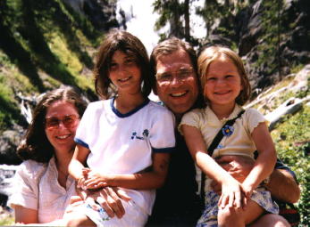 Jon Bernstein with his wife Susan and daughters Jenna (13) and Beth (4) in Olympic Penninsula - Ito rain forest.